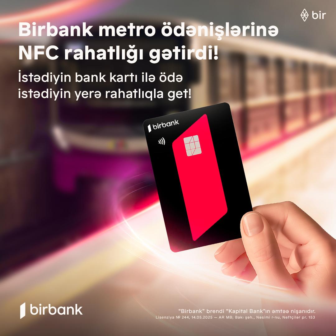 Ölkənin ilk rəqəmsal bankı Birbank-ın təşəbbüskarlığı və texnoloji dəstəyi ilə ölkənin ictimai nəqliyyat sistemində yeni dövrün başlanğıcı hesab ediləcək layihə reallaşdırılıb. Belə ki BakıKart-la birgə həyata keçirilən layihə çərçivəsində artıq vətəndaşlar Bakı Metropolitenində gediş haqqını istənilən banka məxsus təmassız ödənişi dəstəkləyən (NFC) bank kartları ilə ödəyə bilərlər. Bu yenilik təkcə Kapital Bank müştərilərini deyil, bütün bank sektorunu əhatə edir və digər bankların müştəriləri üçün də təmassız ödəniş imkanı yaradır. Həmçinin, yeni sistem “Apple Pay”, “Google Pay” ödəniş sistemləri ilə yanaşı, “Birbank”, “BakıKart” və “m10” ödənişlərini dəstəkləməyə davam edir. Bu isə müştərilərə seçim azadlığı və rahatlıq təqdim edir.