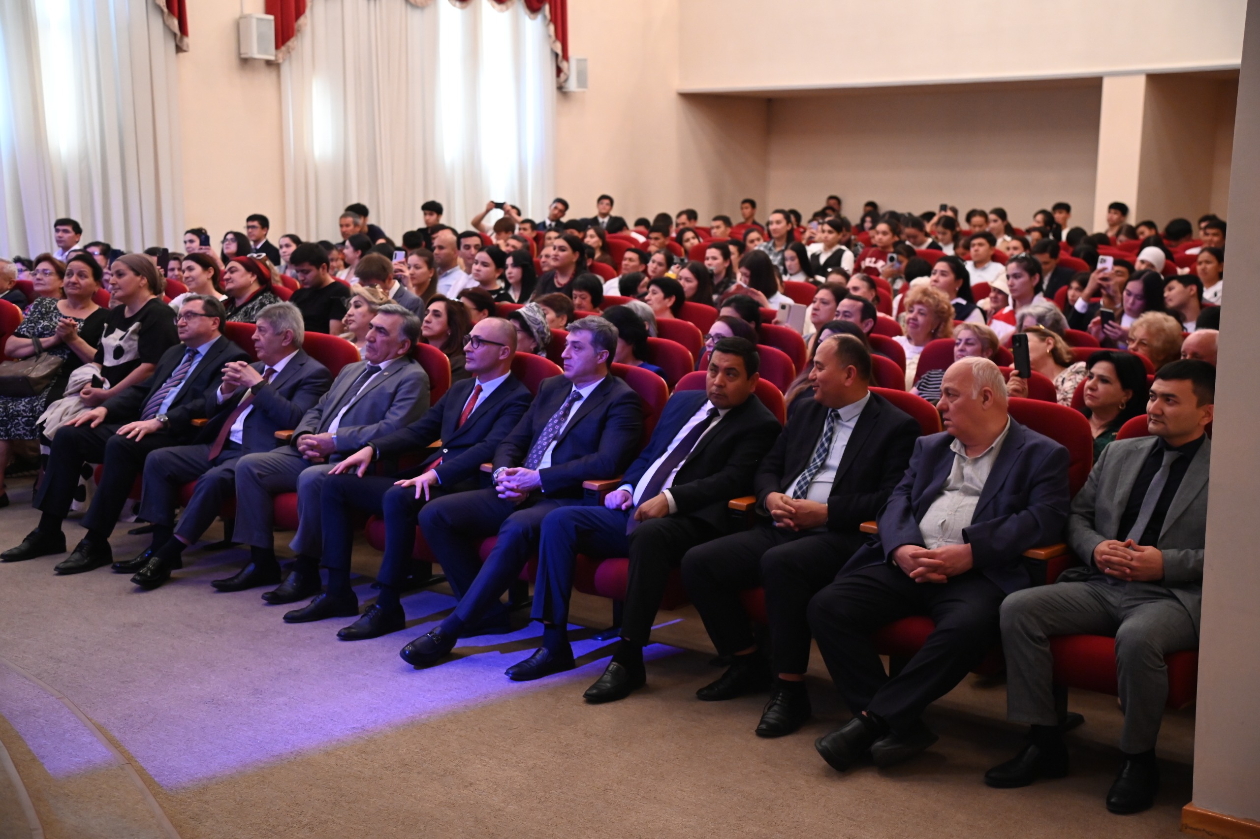 Daha sonra konsert proqramı başlayıb. Bədii hissədə Özbəkistan, Qaraqalpaqstan, Başqırdıstan və Tatarıstanın Xalq artisti Jenisbek Piyazov eləcə də Özbəkistan Dövlət Filarmoniyasının solisti Sayoda Nartajiyeva, “Özbəyim yoşları” ansamblının solisti Sarvinoz Kamilova çıxış edərək Üzeyir Hacıbəylinin məşhur romanslarını və musiqi parçalarını ifa ediblər. Onların səsləndirdiyi əsərlər tamaşaçılar tərəfindən böyük maraqla qarşılanıb, gurultulu alqışlarla müşayiət olunub.