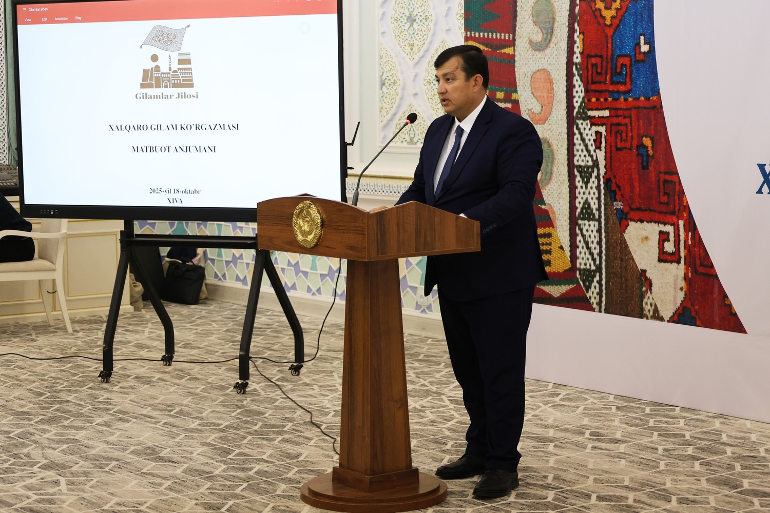 Sərgi-festivalın birinci günü keçirilən mətbuat konfransında respublika “Hunərmənd” Assosiasiyasının sədri Rəsuljon Mirzəhmədov, Xarəzm vilayəti hakiminin müavini Botir Səidov və digər çıxışçılar ilk dəfə keçirilən xalça festivalının məqsədi, əhəmiyyəti və beynəlxalq əməkdaşlığın perspektivlərindən danışıblar.