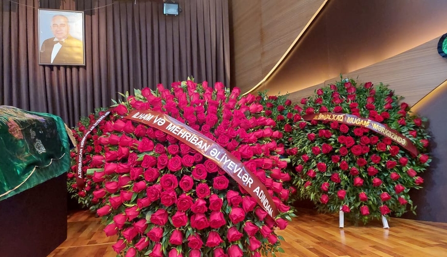 Dövlət başçısı İlham Əliyev və birinci xanım Mehriban Əliyeva adından Xalq atisti Ramiz Quliyevin vida mərasiminə əklil göndərilib.