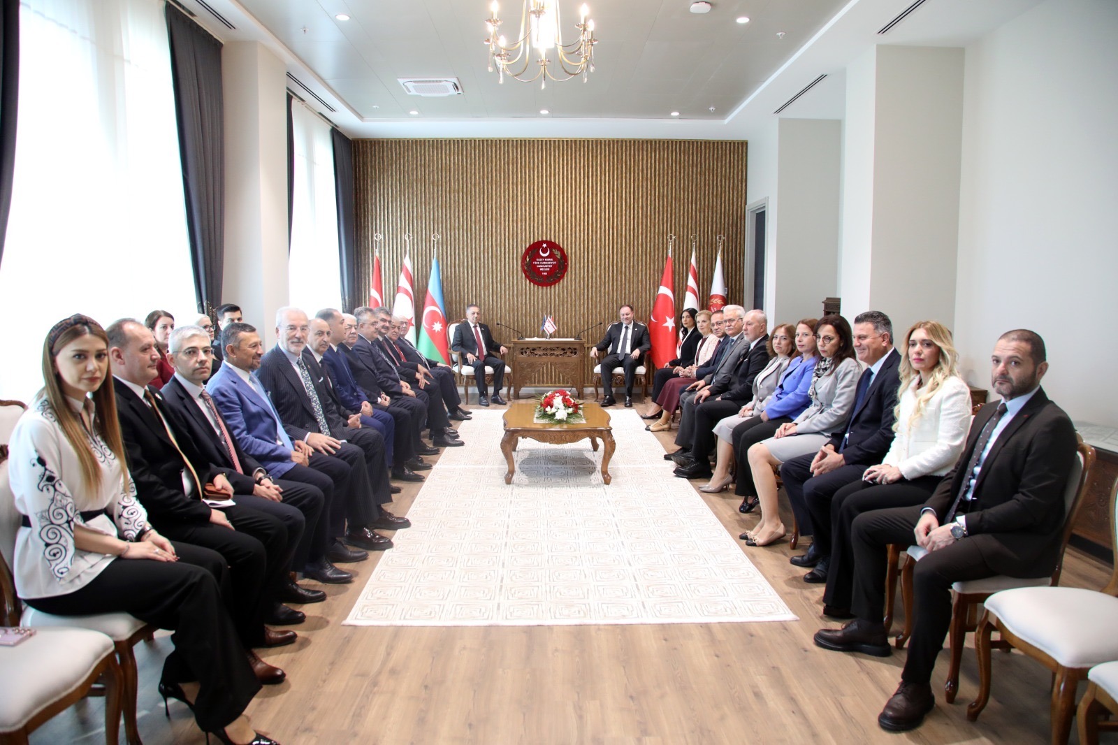 Dinləmələrə başlamazdan əvvəl Şimali Kipr Türk Cümhuriyəti Məclisinin sədri Ziya Öztürklər qonaqları Cumhur Məclisinin yeni binasında qəbul edilib. Azərbaycandan və Türkiyədən gəlmiş qonaqları salamlayan Məclis sədri Qəbələdə “Sülh və Təhlükəsizlik” devizi altında keçirilmiş TDT Dövlət Başçıları Şurasının XII Zirvəsində müzakirə olunan mövzunun aktuallığından danışıb və dövlət başçılarının Qəbələ Zirvə görüşünün yekun Bəyannaməsini yüksək qiymətləndirib. Türk dünyasının sülh və təhlükəsizliyin təmin olunması üçün parlament səviyyəsində birgə əməkdaşlığın faydalı olacağına əminliyini bildirib. Daha sonra Cumhur Məclisinin iclas zalında nümayəndə heyətlərinin birgə toplantısı keçirilib.